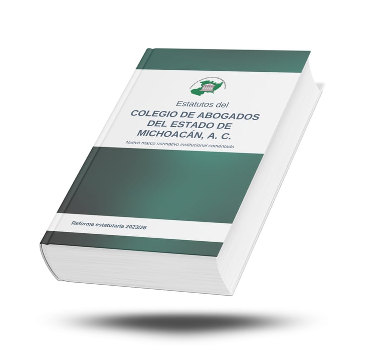 El Colegio de Abogados del Estado de Michoacán, A.C., una institución con setenta y siete años de vida, se honra en poner a disposición de la comunidad jurídica y de la sociedad este volumen que contiene los Estatutos del Colegio acompañados de sus comentarios. Esta obra es el resultado de un proceso institucional que se ha venido construyendo a lo largo de los últimos años y que tuvo un momento clave en la Asamblea General Extraordinaria celebrada el 4 de septiembre de 2023, en la cual se aprobó la reforma integral de nuestros Estatutos, posteriormente protocolizada ante fedataria pública y formalizada para todos los efectos legales.