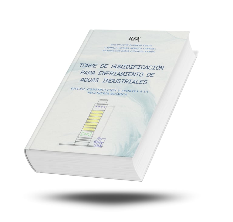 Este trabajo presenta el diseño y construcción de una torre de humidificación para el enfriamiento de aguas industriales calientes, desarrollada a escala piloto y destinada al laboratorio de Operaciones Unitarias de la Facultad de Ciencias Químicas y de la Salud de la Universidad Técnica de Machala. El proyecto integra tanto el enfoque experimental como la simulación computacional, con el objetivo de aportar una herramienta didáctica y de investigación en el campo de la Ingeniería Química. En una primera etapa, se realiza una revisión teórica sobre el funcionamiento de las torres de enfriamiento, sus componentes esenciales y su clasificación, complementada con el análisis de balances de materia y energía aplicables al diseño. A partir de este estudio comparativo, se selecciona una torre atmosférica de tiro natural con relleno, considerando su adecuación a los requerimientos experimentales. El proceso de diseño se apoya en mediciones experimentales de las propiedades de los fluidos de trabajo: agua a 37 °C procedente de la torre de destilación del laboratorio, con un caudal de 0.0476 L/s, y aire atmosférico a 22 °C. Estos datos constituyen la base para la simulación del fenómeno de humidificación empleando el software DWSIM, evaluando modelos termodinámicos como NRTL, Wilson, UNIQUAC y Peng-Robinson. La elección final recae en el modelo de Peng-Robinson, por su simplicidad y capacidad de representar el sistema binario aire–agua en condiciones de transferencia de calor con mínima evaporación. Los resultados de la simulación permiten calcular los parámetros de diseño: calor intercambiado de 0.475 kW, temperatura final del aire de 27.32 °C, potencia de ventilador de 0.25 hp, potencia de bomba de 0.5 hp, altura total de la torre de 1.60 m, altura de empaquetamiento de 1,28 m y área transversal de 0,25 m². Con estos datos, se elaboran planos de construcción detallados mediante QCAD, que contemplan el uso de láminas de acrílico y acero inoxidable, PVC para tuberías y relleno, y sistemas de distribución de agua y aire. El proyecto no solo proporciona un prototipo funcional para uso académico, sino que también sienta las bases para la construcción de la torre de humidificación. De este modo, la obra constituye un aporte significativo al desarrollo de equipamiento didáctico y a la investigación aplicada en Ingeniería Química.